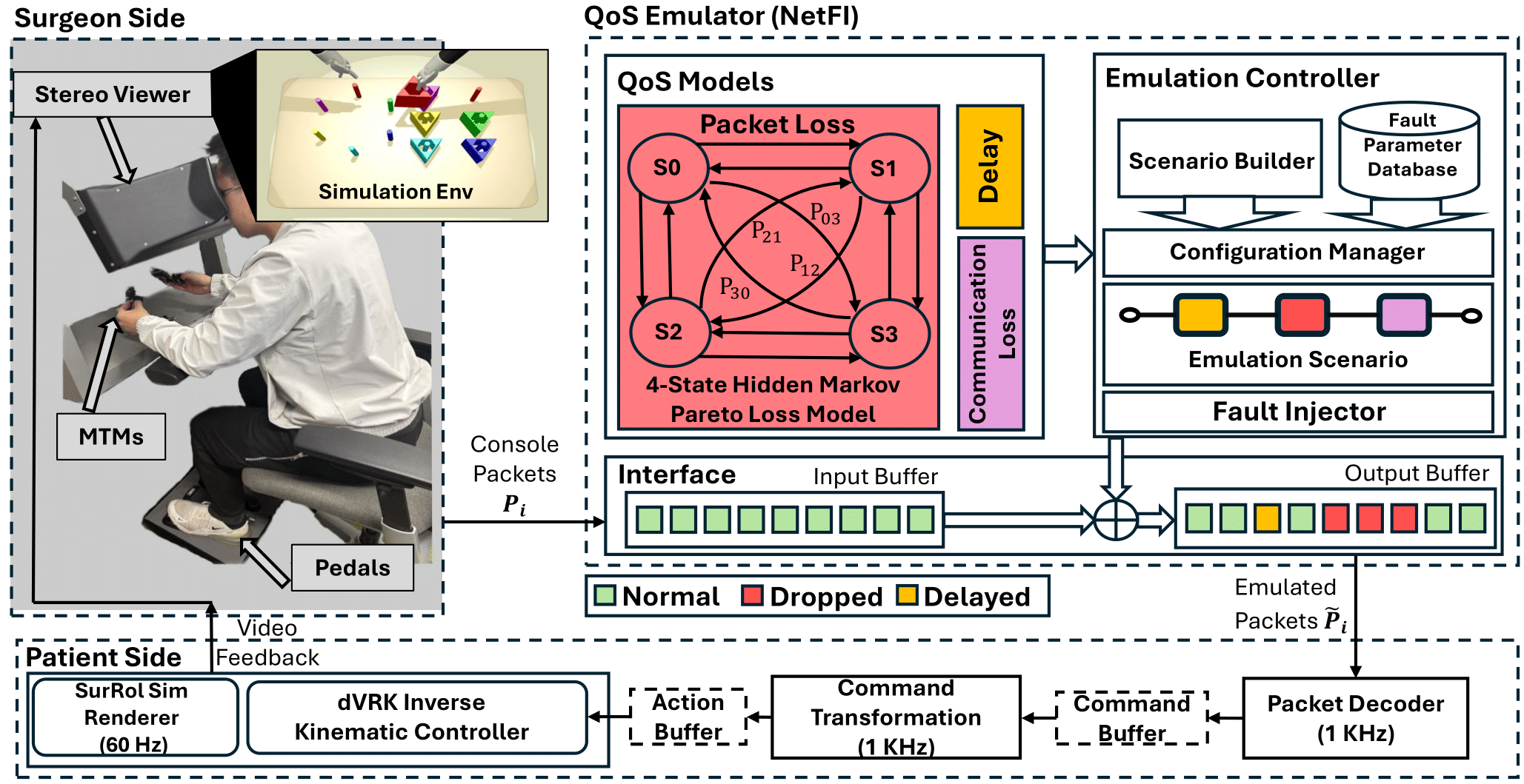 This work introduces NetFI and quantifies how packet loss, delay, and communication loss affect telesurgical performance, safety, and workload at both the task and motion-primitive levels.